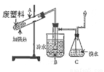 某些废旧塑料可采用下列方法处理:将废塑料隔绝空气加强热,使其变成有用的物质,实验装置如右图。加热聚丙烯废塑料得到的产物如下表: