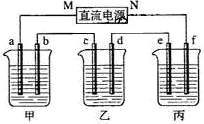 下图所示装置中,甲、乙、丙三个烧杯依次分别盛放足量的A溶液、足量的B溶液、足量的C溶液,电极均为石墨电极。