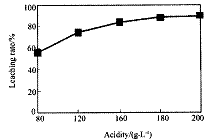 从火法炼锌蒸馏后的残渣中含多种金属单质及In2O3,可用硫酸提取铟,某研究机构对些研究数据如下。实验中涉及的酸度(每升溶液中含硫酸的质量)与铟的浸出率如下图1;硫酸溶液的体积与固体的体积比如图2