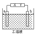有一电解池中X,Y分别是直流电源的两极,通电后发现a极板质量增加,b极板处有无色无臭气体放出,符合这一情况的是(