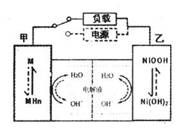 (2)混合动力车的电动机目前一般使用的是镍氢电池,镍氢电池采用镍的化合物为正极,储氢金属(以M表示)为负极,碱液(主要为KOH)为电解液。镍氢电池充放电原理示意如图,其总反应式是: