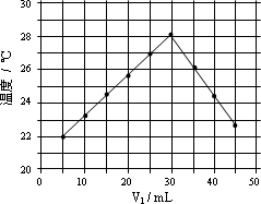 将V1mL1.0mol/L HCl溶液和V2mL未知浓度的NaOH溶液混合均匀后测量并记录溶液温度,实验结果如右图所示(实验中始终保持V1+V2=50mL).下列叙述正确的是