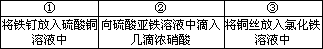 上述实验证明氧化性:Fe3+>Fe2+>Cu2+ |