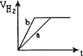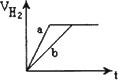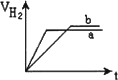 等质量的两份锌粉a、b分别加入到两份质量相同的过量的稀硫酸中,同时向a中加入少量的CuSO4溶液,下列各图为产生H2的体积V(L)与时间t(min)的关系,其中正确的是 | |