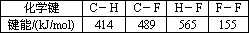 根据键能数据估算CH4(g)+4F2(g)=CF4+4HF(g)的反应热ΔH为
