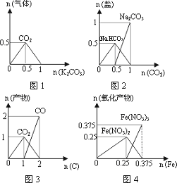 图1:n(HCl)=1 mol,K2CO3逐步加入到HCl溶液中,在敞口容器中生成的气体 |