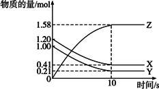 某温度下,浓度都是1 mol·L-1的两种气体X2和Y2,在密闭容器中反应生成气体Z,经过t min后,测得容器中各物质的浓度分别为c(X2)=0.4 mol·L-1,c(Y2)=0.8 mol·L-1,c(Z)=0.4 mol·L-1,则该反应的反应式可表示为 | |