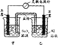 电流计读数为零后,在甲中溶入FeCl2固定,乙中石墨电极为负极 |
