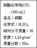 下图是某学校实验室从化学试剂商店买回的硫酸试剂标签上的部分内容.据此下列说法正确的是