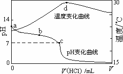 d点后,溶液温度略下降的主要原因是NH3·H2O电离吸热 |