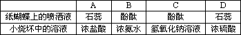 学生用滤纸折成一只纸蝴蝶并在纸蝴蝶上喷洒某种试剂,挂在铁架台上.另取一只盛有某种溶液的烧杯,放在纸蝴蝶的下方(如图).过一会儿,发现纸蝴蝶的颜色由白色转变为红色,喷洒在纸蝴蝶上的试剂与小烧杯中的溶液是