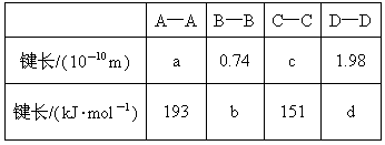 实验测得四种结构相似的单质分子的键能、键长的数据如下: