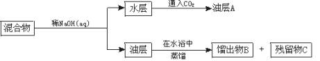 有一种苯酚、苯和硝基苯的混合物,为把它们彼此分离进行如下操作,得到A、B、C三个组分,在横线上写出各组分主要化合物的结构简式: