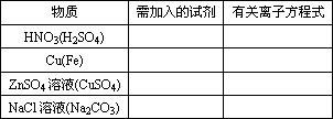 分别用一种试剂将下列物质中混入的少量杂质除去(括号内为混入的杂质).