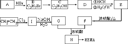 软性隐形眼镜可由聚甲基丙烯酸羟乙酯(HEMA)制成超薄镜片,其合成路线可以是: