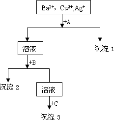 某溶液中含有Ba2+,Cu2+,Ag+,现用NaOH溶液、盐酸和Na2SO4溶液将这三种离子逐一沉淀分离.其流程图如下.