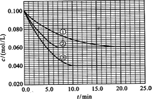 在溶液中,反应A+2BC分别在三种不同实验条件下进行,它们的起始浓度均为c(A)=0.100 mol/L、c(B)=0.200 mol/L及c(C)=0 mol/L.反应物A的浓度随时间的变化如下图所示.