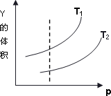 可逆反应:X+3Y(g)2Z(g)+2W(g)达到平衡,混合物中Y的体积分数随压强(P)与温度T(T2>T1)的变化关系如图示.