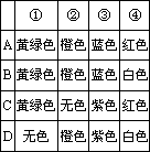 已知常温下氯酸钾与浓盐酸反应能放出氯气,现按下图进行卤素的性质实验.玻璃管内分别装有滴有少量不同溶液的白色棉球,反应一段时间后,对图中指定部位颜色描述正确的是________.