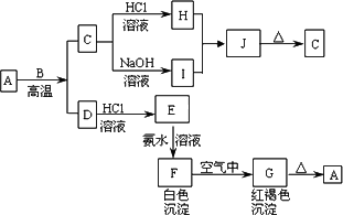 A是一种红棕色金属氧化物,B、D是金属单质,J是一种难溶于水的白色化合物,受热后容易发生分解.