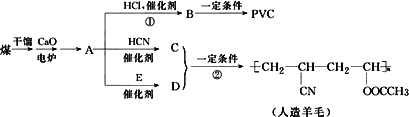 近年来,由于石油价格不断上涨,以煤为原料制备一些化工产品的前景又被看好.下图是以煤为原料生产聚氯乙烯(PVC)和人造羊毛的合成路线.