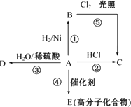 某烃A是有机化学工业的基本原料,其产量可以用来衡量一个国家的石油化工发展水平,A还是一种植物生长调节剂,A可发生如图所示的一系列化学反应,其中①②③属于同种反应类型.根据图回答下列问题: