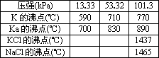(1)在常压下金属钾转变为气态从反应混合物中分离的最低温度约为________,而反应的最高温度应低于________.