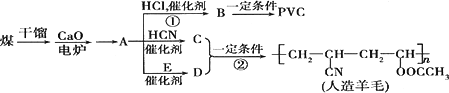 近年来,由于石油价格不断上涨,以煤为原料制备一些化工产品的前景又被看好.下图是以煤为原料生产聚氯乙烯(PVC)和人造羊毛的合成路线.
