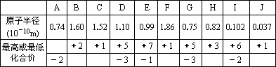 (5)用J元素的单质与A元素的单质可以制成电池,电池中装有KOH浓溶液,用多孔的惰性电极甲和乙浸入KOH溶液,在甲极通入J的单质,乙极通入A的单质,则甲极的电极反应式为:________.