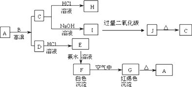 A是一种红棕色金属氧化物,B、D是金属单质,J是一种难溶于水的白色化合物,受热后容易发生分解.