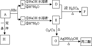 下列是A、B、C、D、E、F、G、H及丙二酸(HOOCCH2COOH)间转化反应的关系图.A是一种链状羧酸,分子式为C3H4O2;F中含有由七个原子构成的环;H是一种高分子化合物.请填写下列空白: