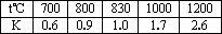 其平衡常数K和温度t的关系如下:
