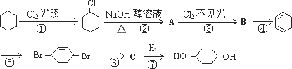 由环己烷可制得1,4–环己二醇,流程如下(其中无机产物都已略去),试回答: