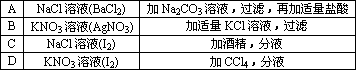 通过加入适量的化学药品,采用恰当的分离提纯方法,除去某溶液里溶解的杂质,下列做法中不正确的是(括号内的物质为杂质)________