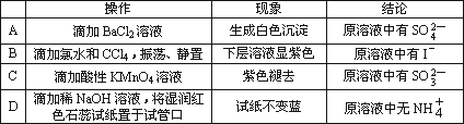 向四支试管中分别加入少量不同的无色溶液进行如下操作,结论正确的是________.