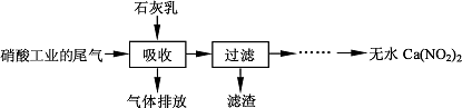 利用石灰乳和硝酸工业的尾气(含NO、NO2)反应,既能净化尾气,又能获得应用广泛的Ca(NO2)2,其部分工艺流程如下: