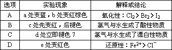 下图所示是验证氯气性质的微型实验,a、b、d、e是浸有相关溶液的滤纸.向KMnO4晶体滴加一滴浓盐酸后,立即用另一培养皿扣在上面.