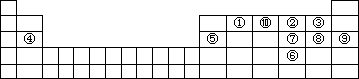 下图是元素周期表的一部分,针对表中的①~⑩中元素,填写下列空格: