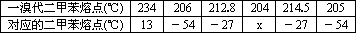 已知由六种一溴代二甲苯同分异构体的熔点和对应的二甲苯熔点数据如下表所列: