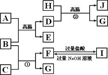 下图中A~J均代表无机物或其水溶液,其中B、D、G是单质,B是地壳中含量最多的金属元素,G是气体,J是磁性材料,A可做颜料.根据图示回答问题: