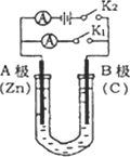 ③、反应一段时间后打开K2,若忽略溶液的体积变化和气体的溶解,B极产生气体的体积(折算成标准状况)为11.2 mL,若将溶液充分混合,溶液的pH为________