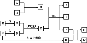 下图每一方框中的字母代表一种反应物或生成物,它们都是中学化学中常见的物质.产物J是含A金属元素的胶状白色沉淀,I为NaCl溶液,L是水,D是淡黄色固体,E为单质.
