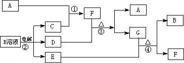 下图为中学化学中几种常见物质的转化关系(部分产物已略去).已知:A、C、D是常见的气体单质,F气体极易溶于水,且液态常做制冷剂.