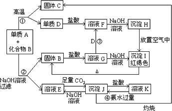 由单质A与化合物B两种粉末组成的混合物,在一定条件下可按下图所示发生转化: