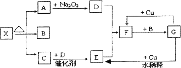 下图的各方框表示有关的一种反应物或生成物(某些物质已经略去),其中常温下A、C、D为无色气体,C能使湿润的红色石蕊试纸变蓝.