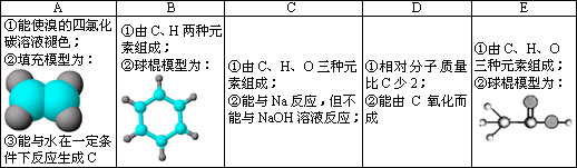 下表是A、B、C、D、E五种有机物的有关信息;