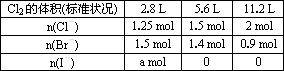 (4)经检测,该溶液中还含有大量的Cl-、Br-、I-,若向1 L该混合溶液中通入一定量的Cl2,溶液中Cl-、Br-、I-的物质的量与通入Cl2的体积(标准状况)的关系如下表所示,分析后回答下列问题: