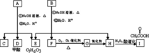 芳香化合物A、B互为同分异构体,B的结构简式为:,A经①、②两步反应得C、D和E.B经①、②两步反应得E(只能得到两种一溴代物)、F和H.上述反应过程、产物性质及相互关系如图所示.