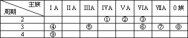 下表是元素周期表的一部分,针对表中的①~⑨种元素,填写下列空白: