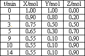 某温度时,在2 L密闭容器中气态物质X和Y反应生成气态物质Z,它们的物质的量随时间的变化如表所示.